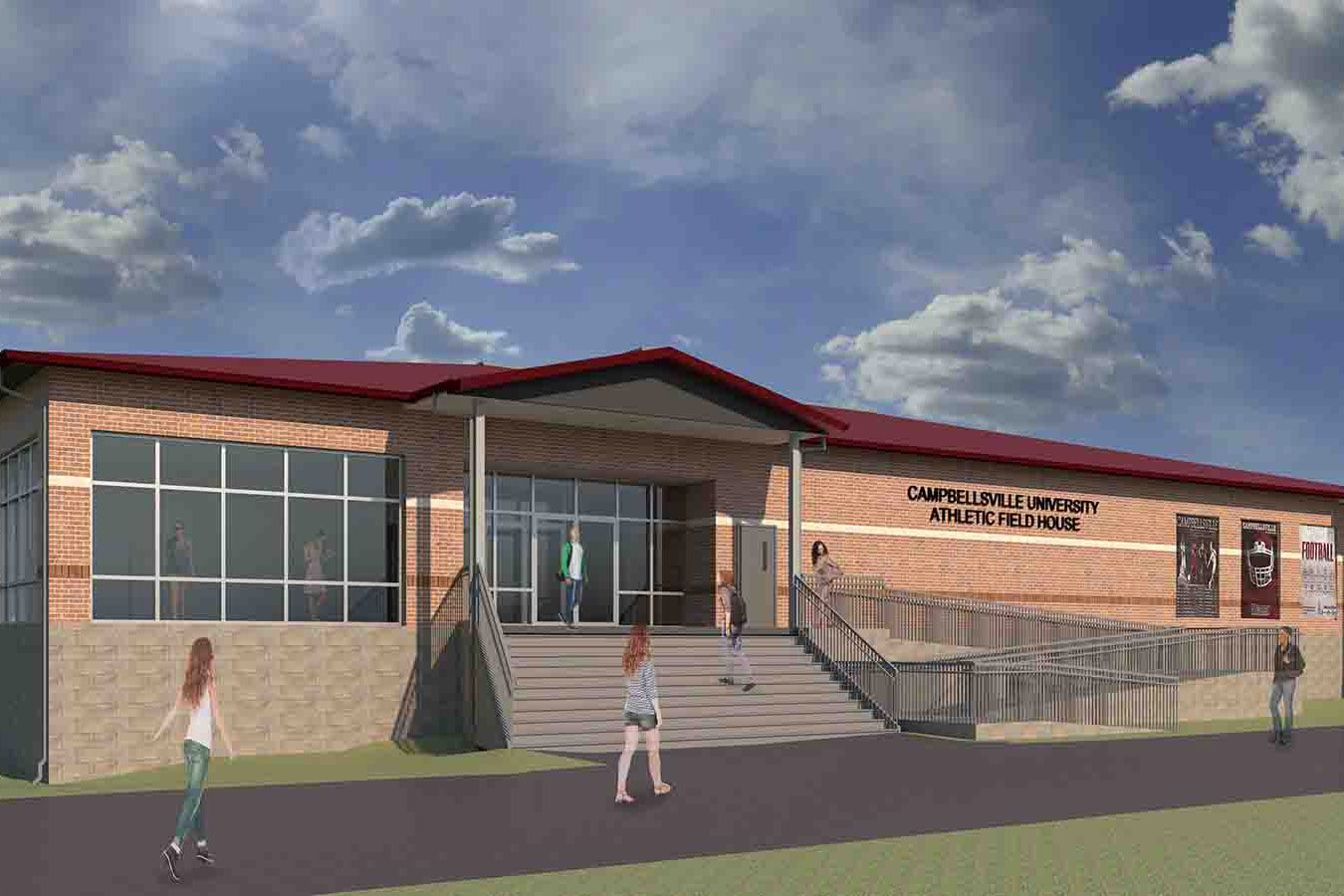 When fire destroyed the existing Fieldhouse, KSA was called upon by Campbellsville University to design a new Fieldhouse, which will house the football team locker room, the men and women’s soccer team locker room, coaches’ offices, Hall of Fame room and Film Room. The 26,600 SQ. FT. building will be constructed of load bearing masonry with metal trusses and standing seam metal roof.